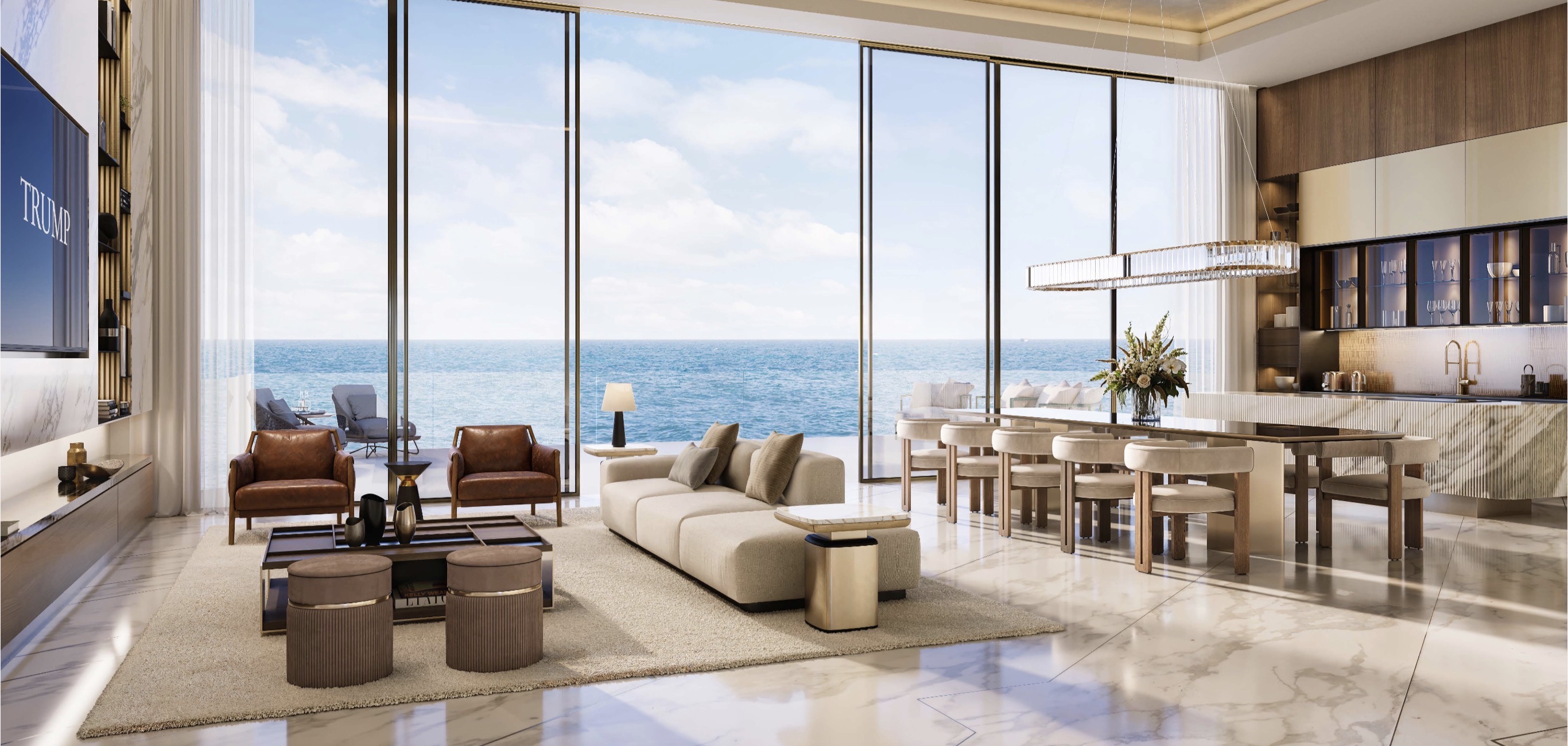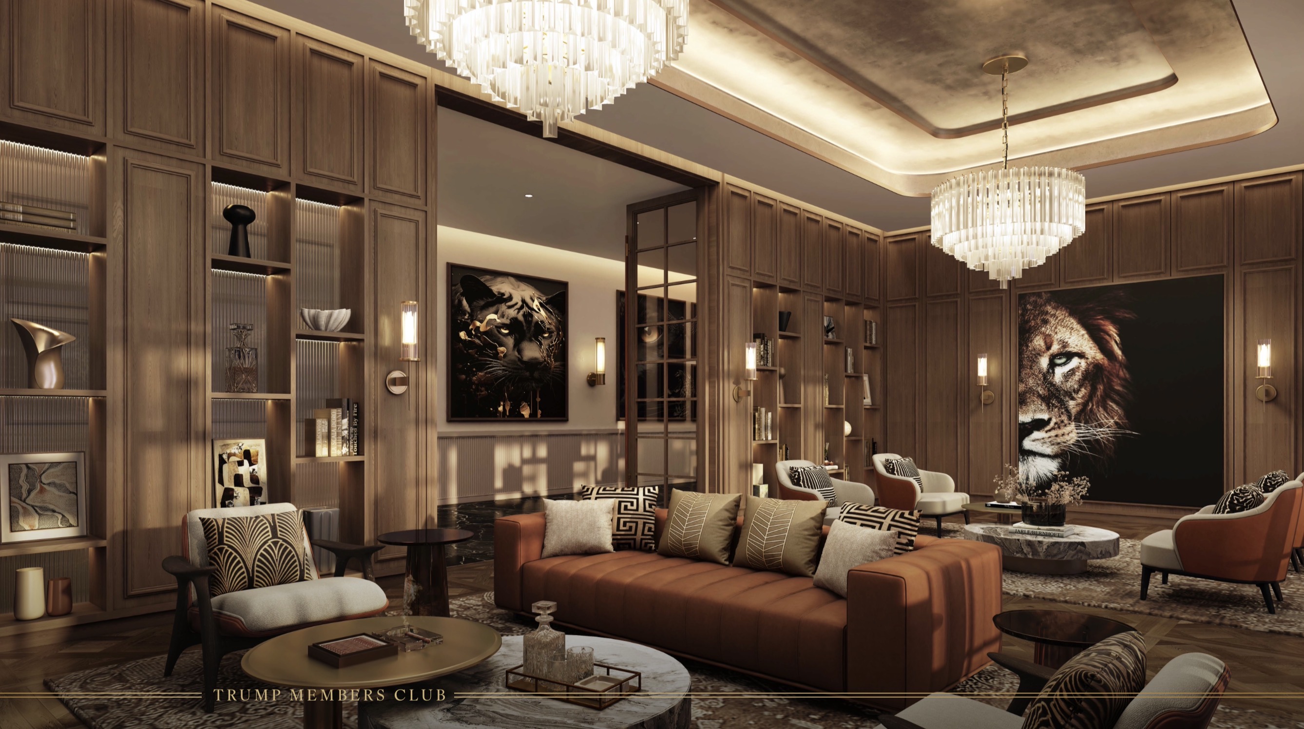 The Trump Tower clubhouse's contemporary interior design harmoniously blends with traditional influences. The perfect balance of luxury and comfort creates an atmosphere of tranquility and inspiration.